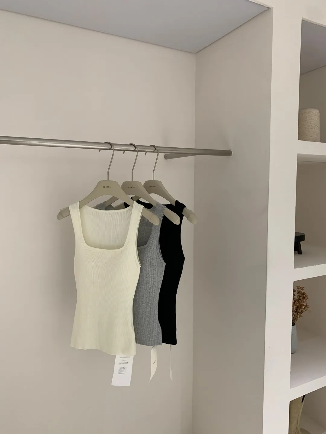 固定杯方領坑條針織背心(現貨:黑1灰1)