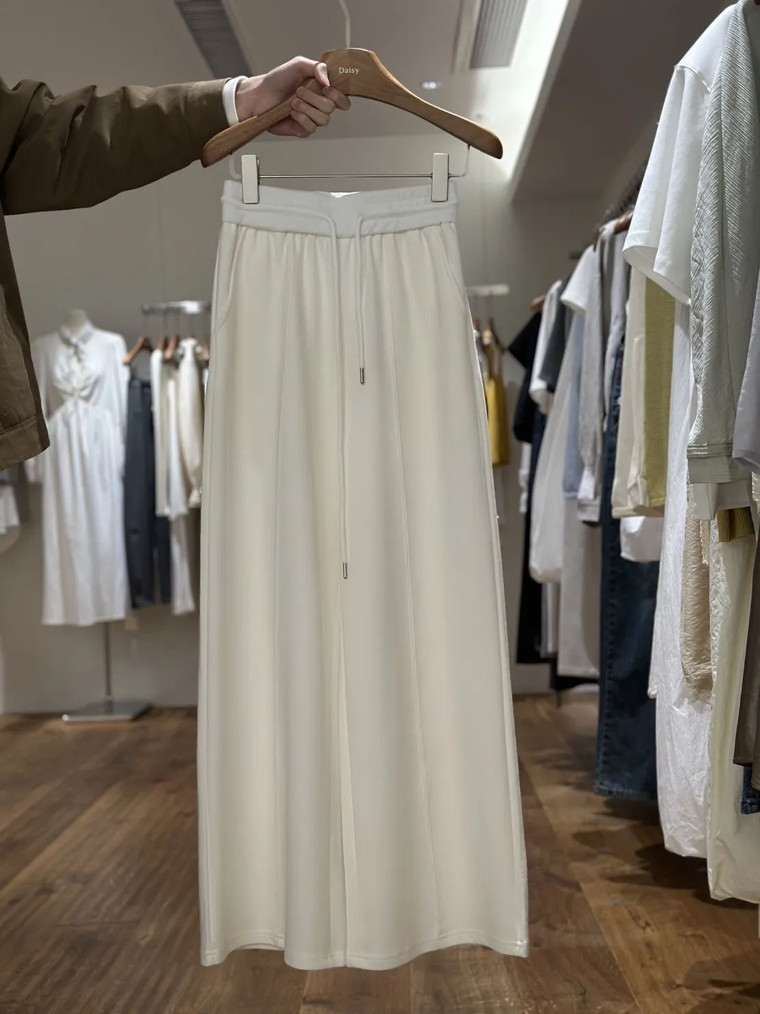 寬腰空氣棉長褲(現貨:白S*1)
