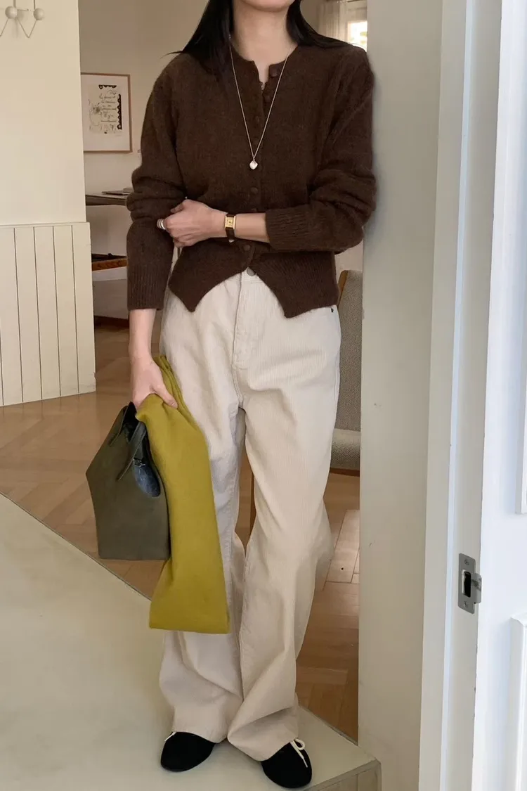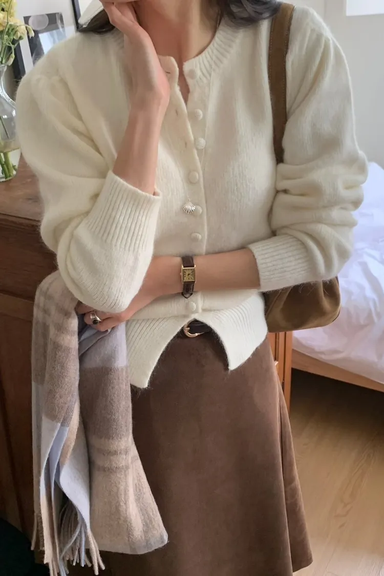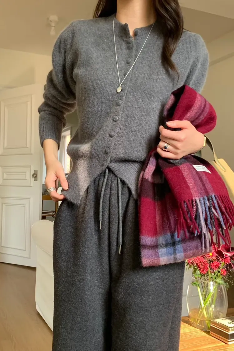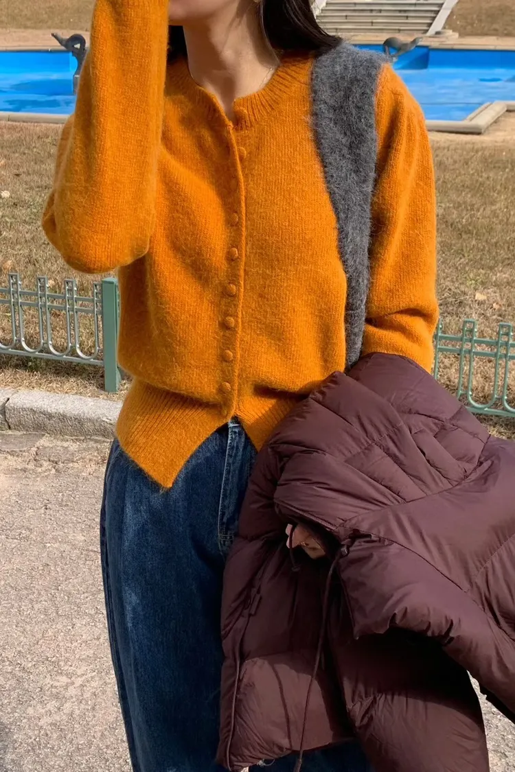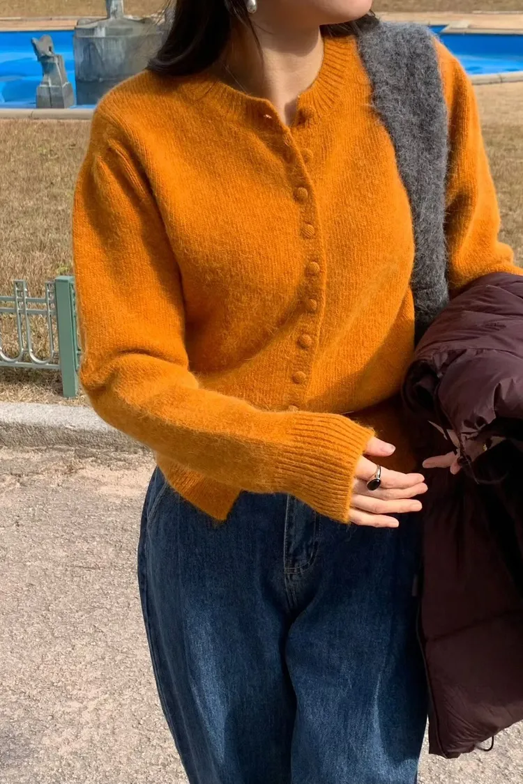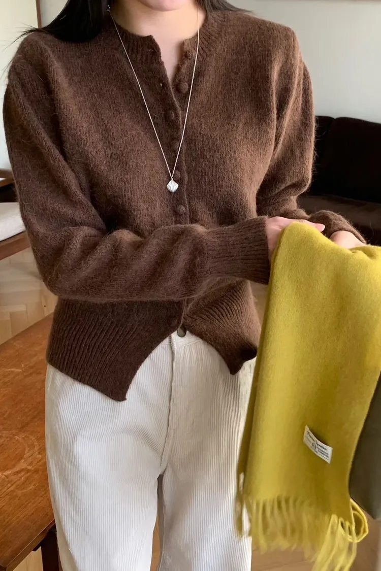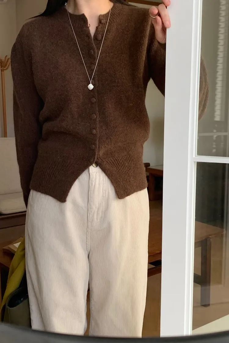 100%羊毛包釦開襟圓領針織*4色