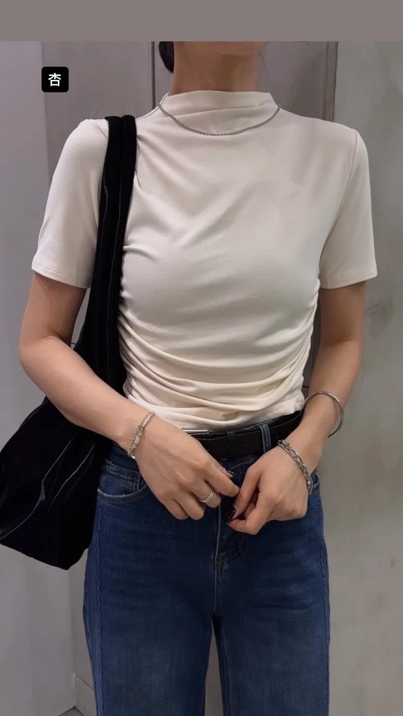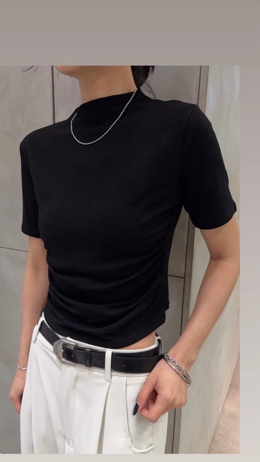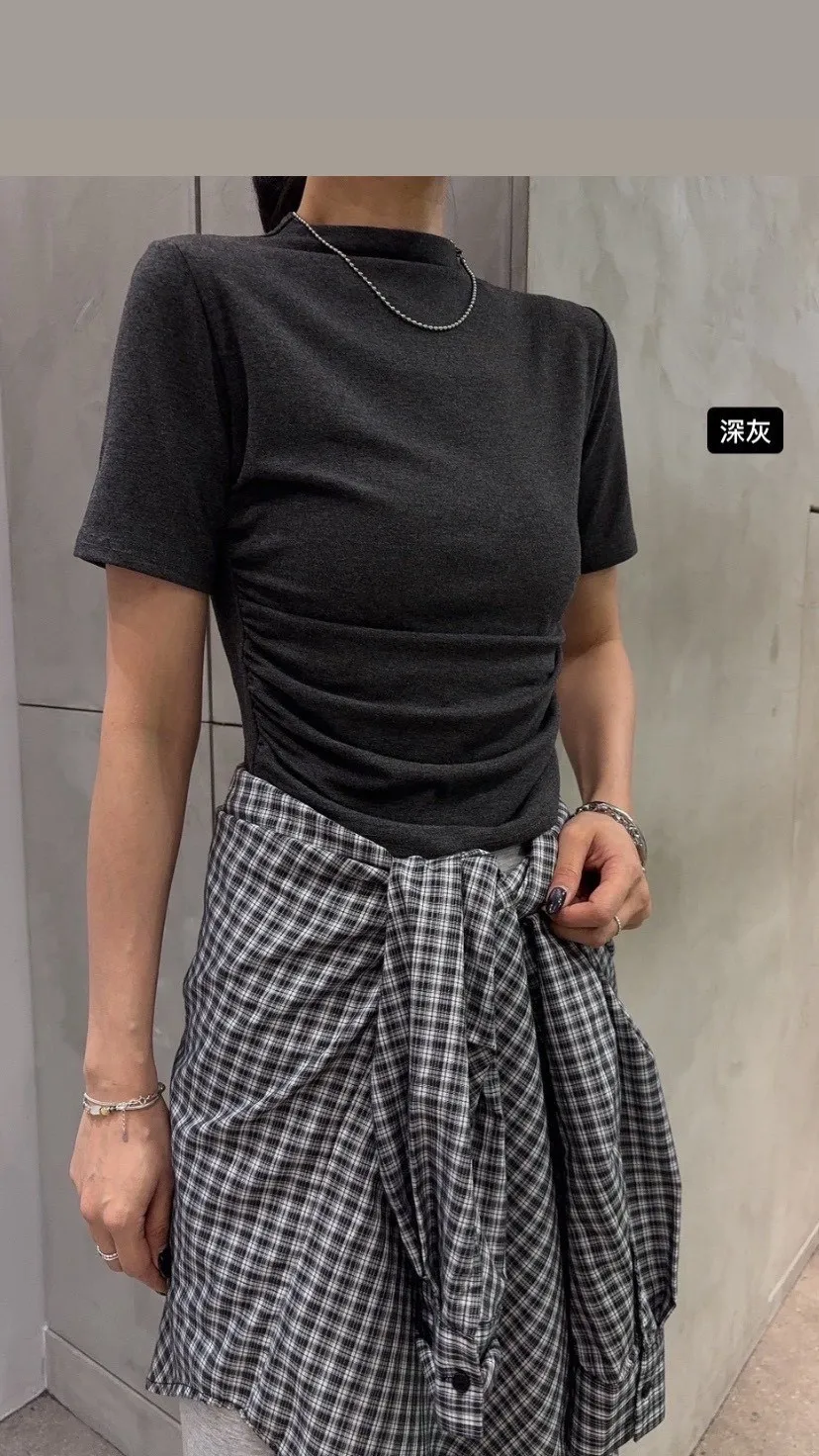 半領側皺天絲踢*5色